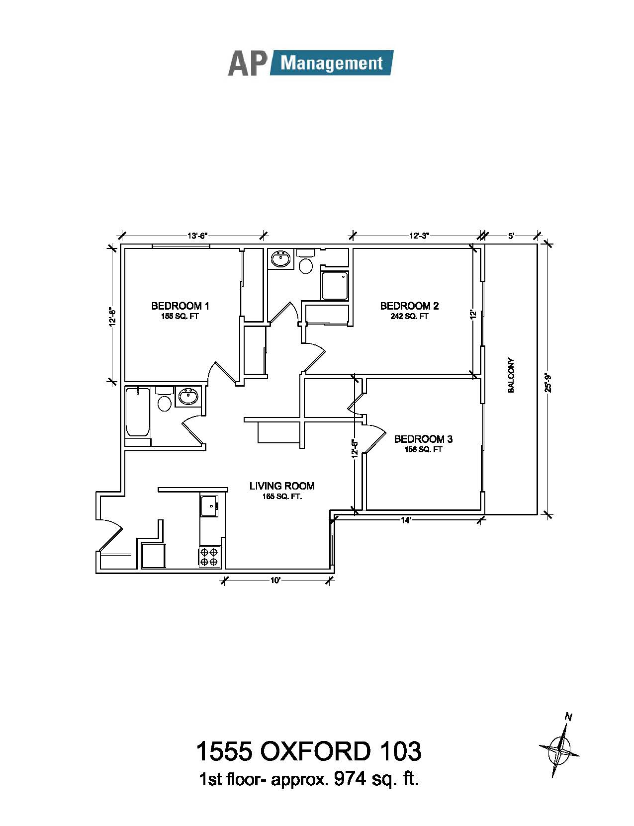 AP – 1555 Oxford Street #103 – 3bd/2ba + Yard – $4,895 – Available June 1st – OPEN HOUSE Sun. 2/22 11:30am -12pm