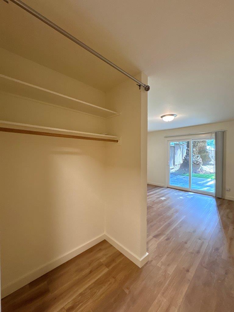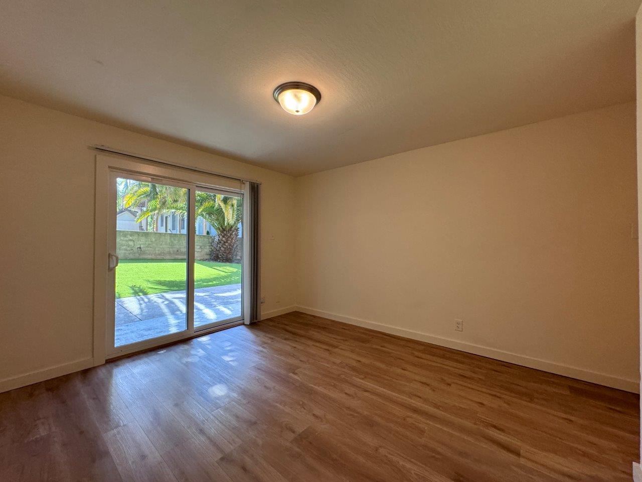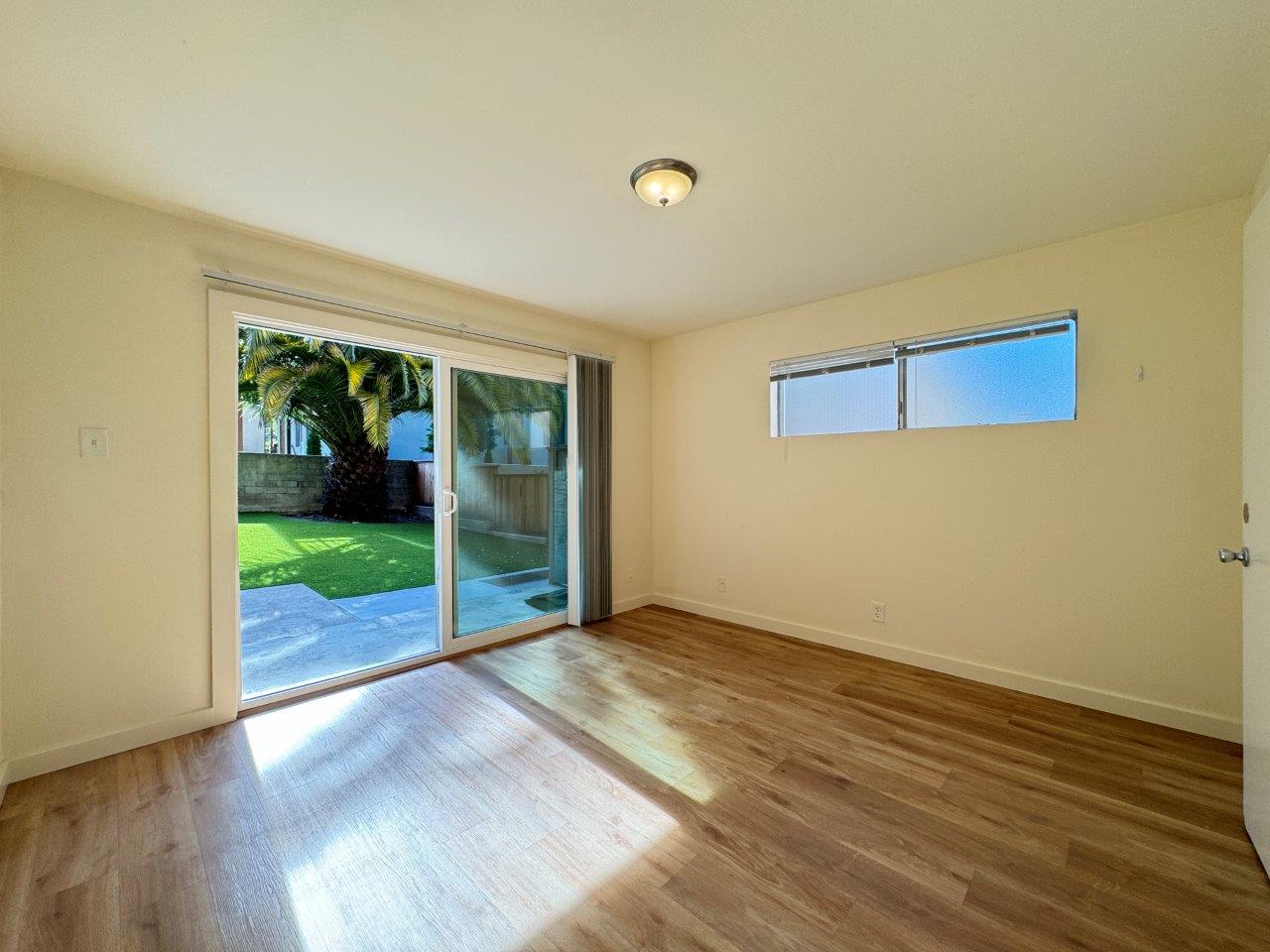 All three bedrooms are roomy with their own dedicated closet space. Two bedrooms have direct access to a huge fenced private yard with concrete patio. Monthly landscaping service by owner is included.