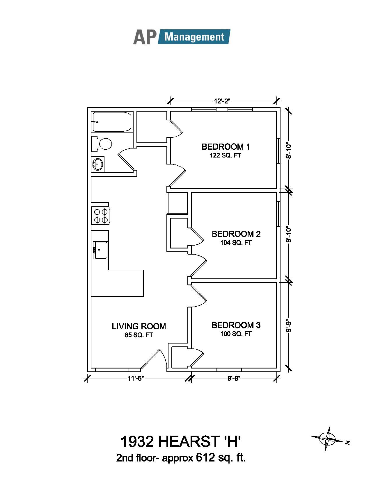 3-Bedroom / 1-Bath, 612 sq feet