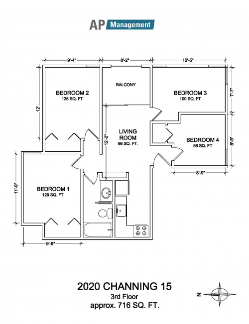 4-Bedroom / 1-Bath, 716 sq feet