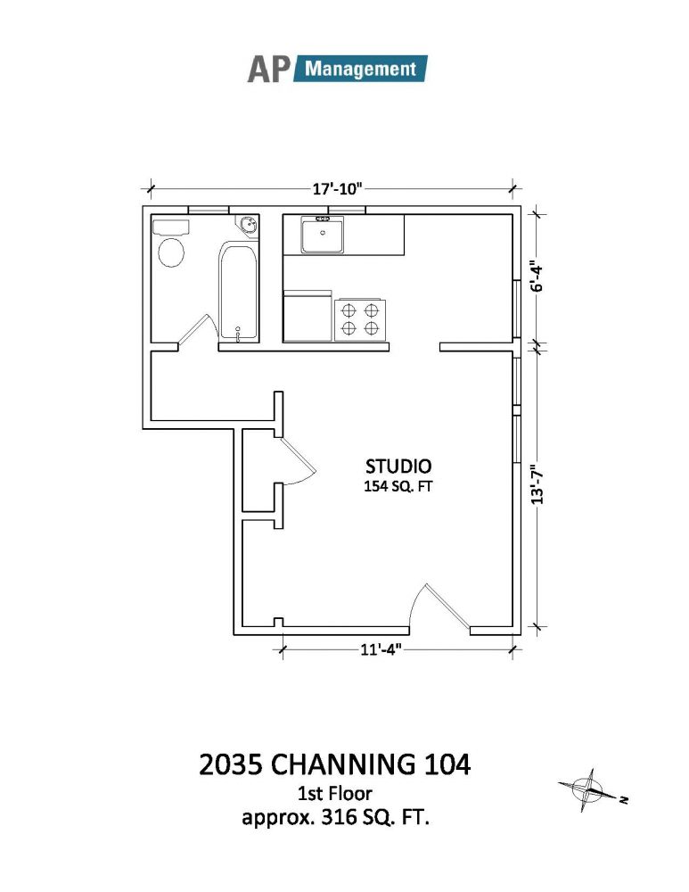 Studio / 1-Bath, 316 sq feet