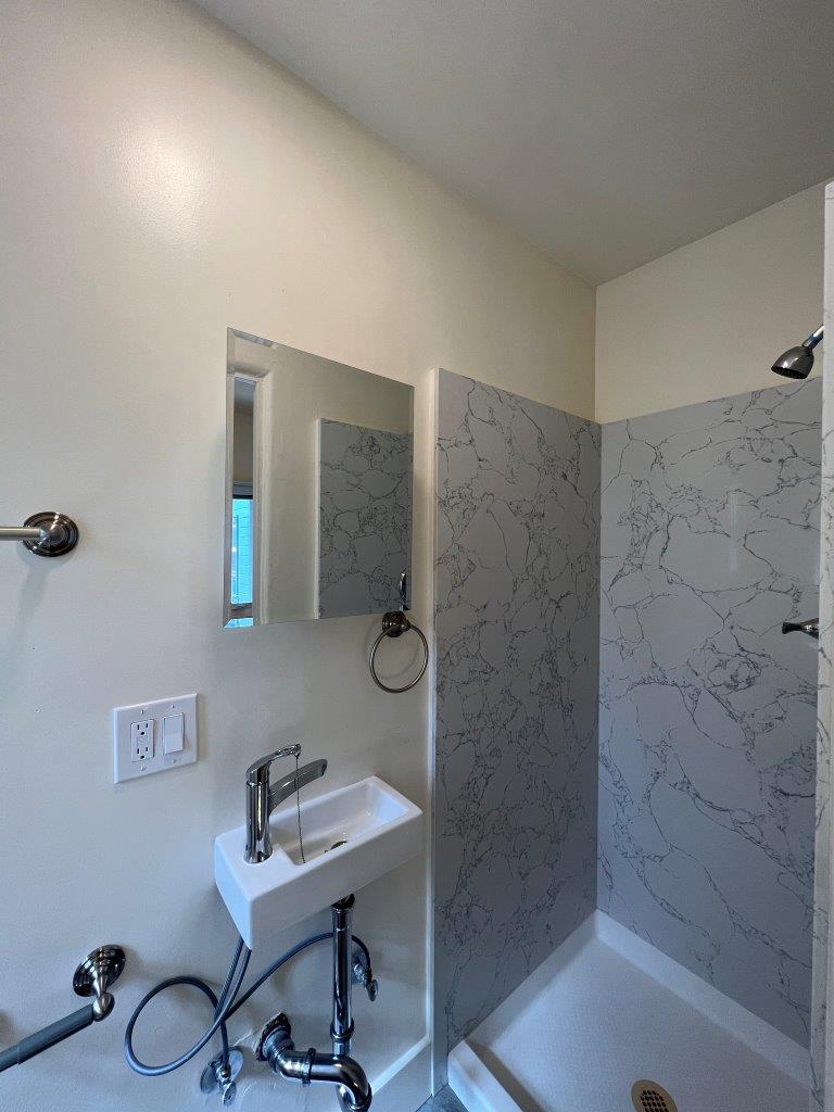 This unit features hardwood floors and a remodeled kitchen with quartz countertops, stainless steel appliances, and shaker cabinets. Bathroom is also getting an upgrade with new cultured marble surround and updated fixtures.