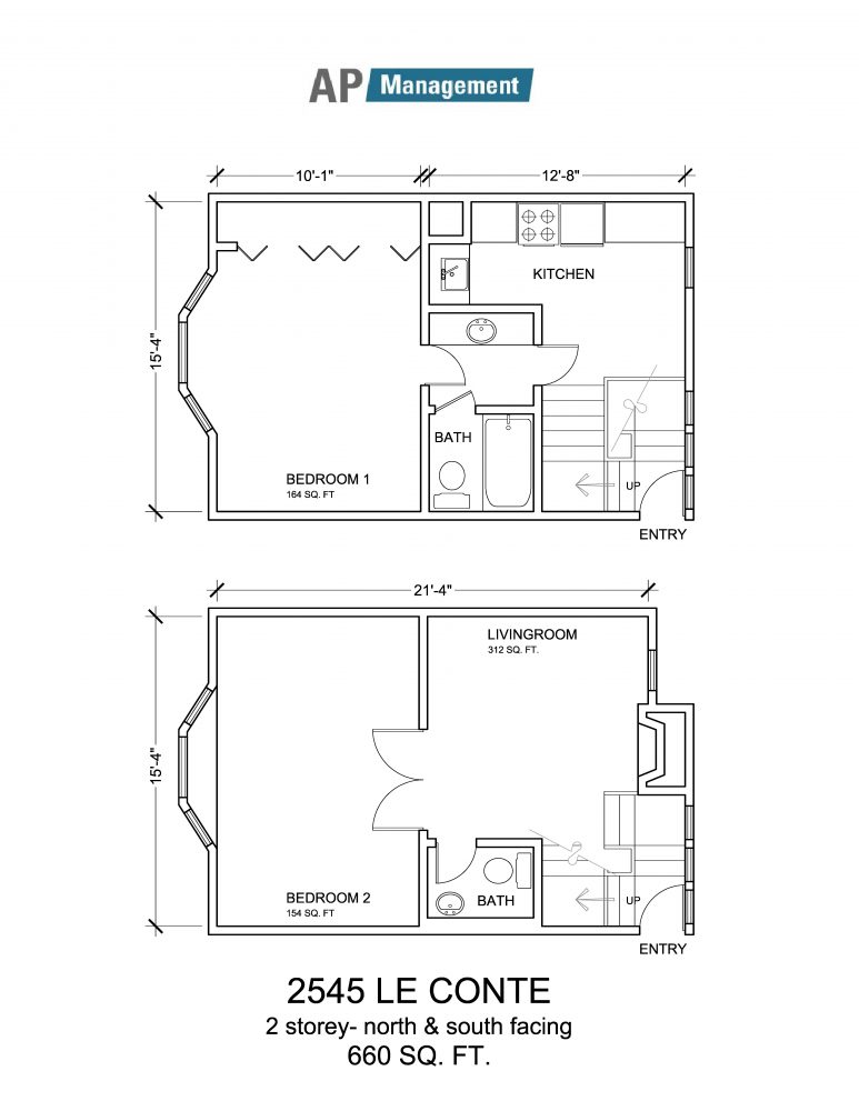 2-Bedroom / 1.5-Bath, 660 sq feet