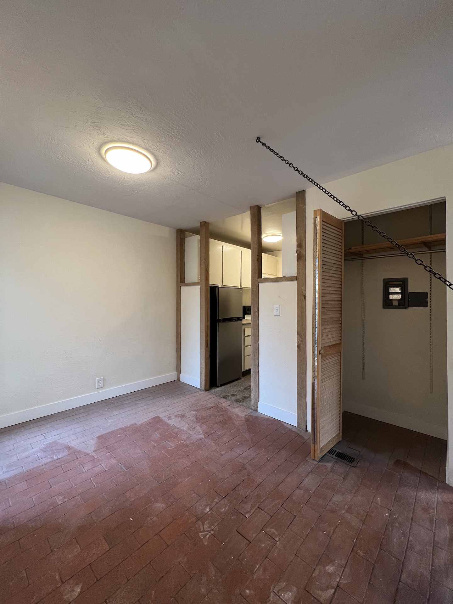 Kitchen appliances come included – electric range and fridge / freezer.