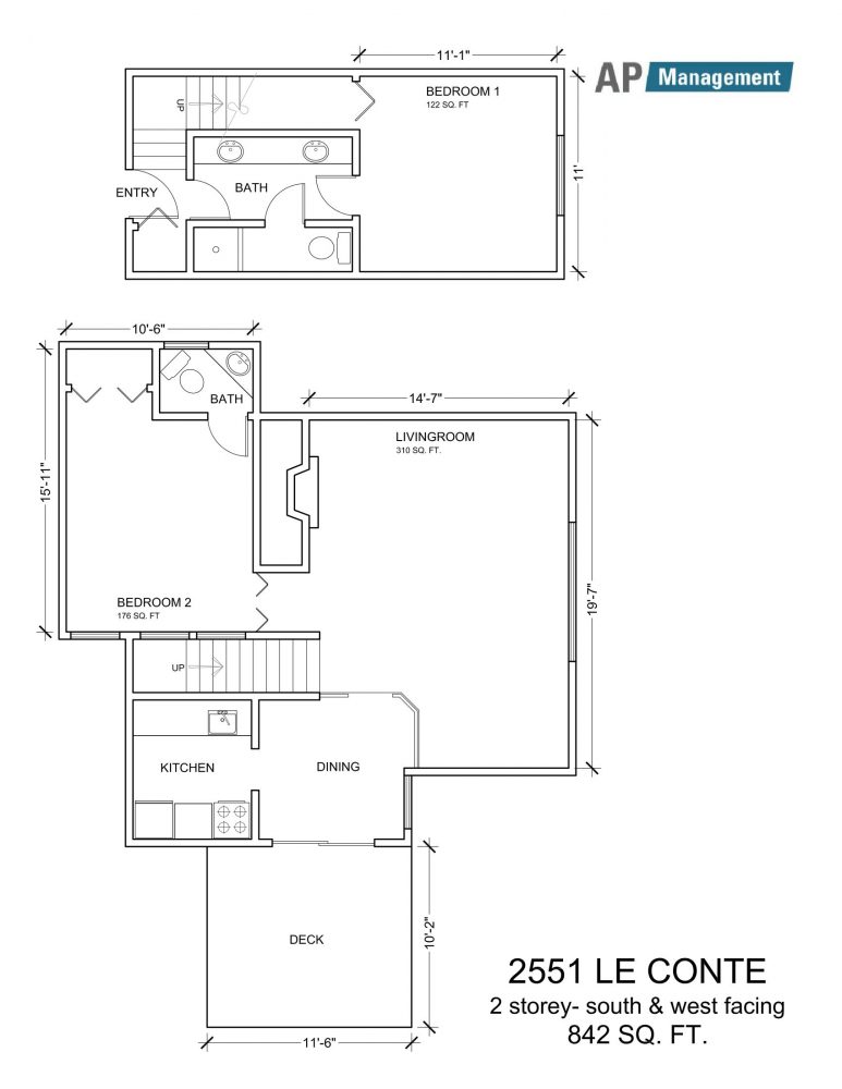 2-Bedroom / 2-Bath, 840 sq feet