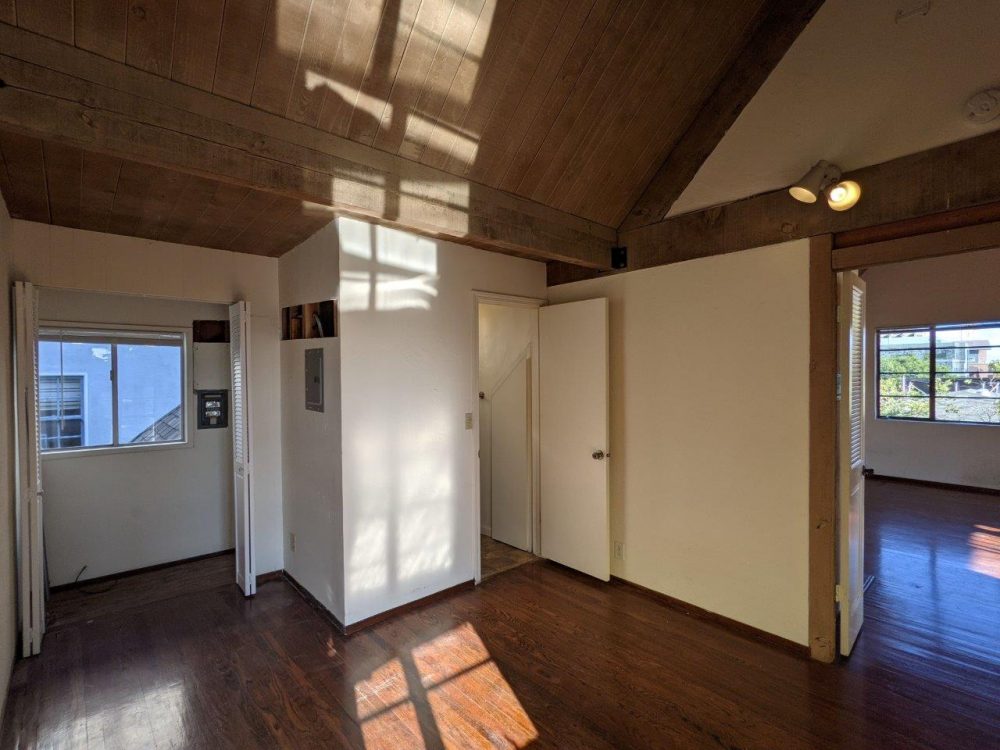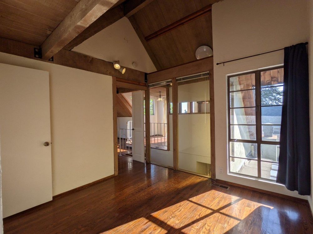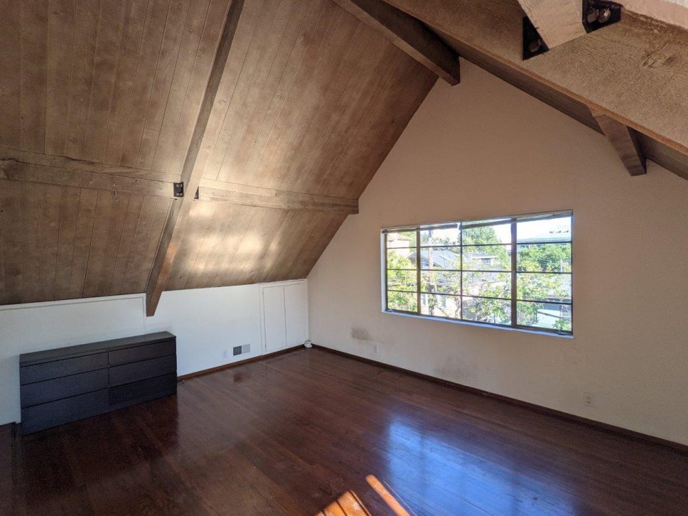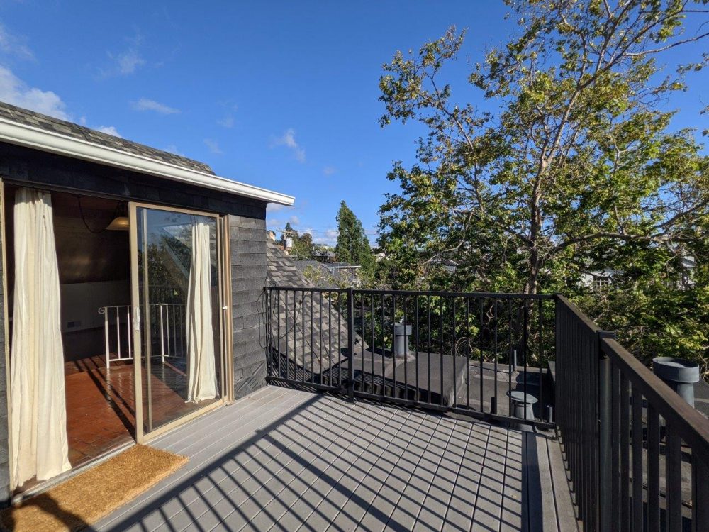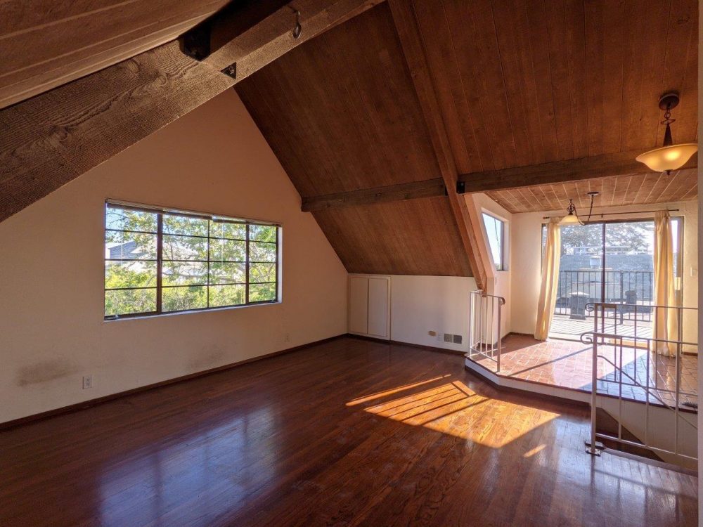 This spacious unit boasts original vintage details like natural wood beams, tall / exposed ceilings, and original hardwood floors. Unit is on the top floor and has nice views of the Campanile and surrounding neighborhood. Large private deck offers plenty of space for outdoor entertaining.