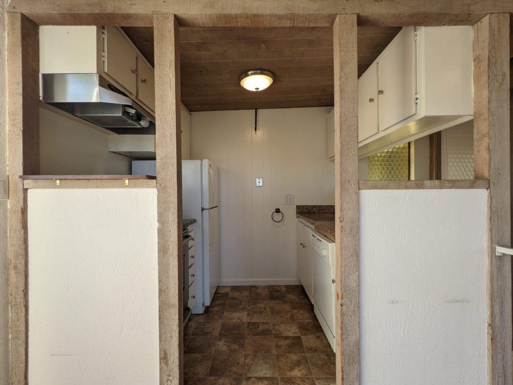 Kitchen appliances come included – electric range, fridge / freezer, and dishwasher.
