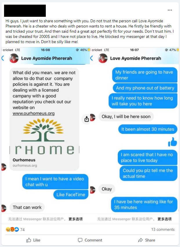 We are seeing most of these scams on Craigslist or on Facebook Marketplace or housing groups. Vague posts on FB asking you to “Inbox me” or “screenshot this post via DM” are red flags.