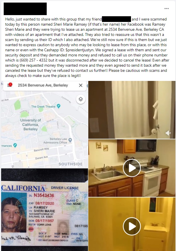 More information on housing scams on this page: Housing Scams in Berkeley