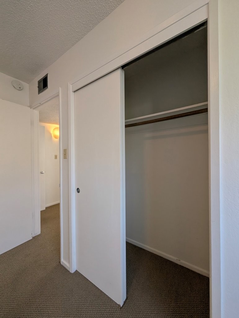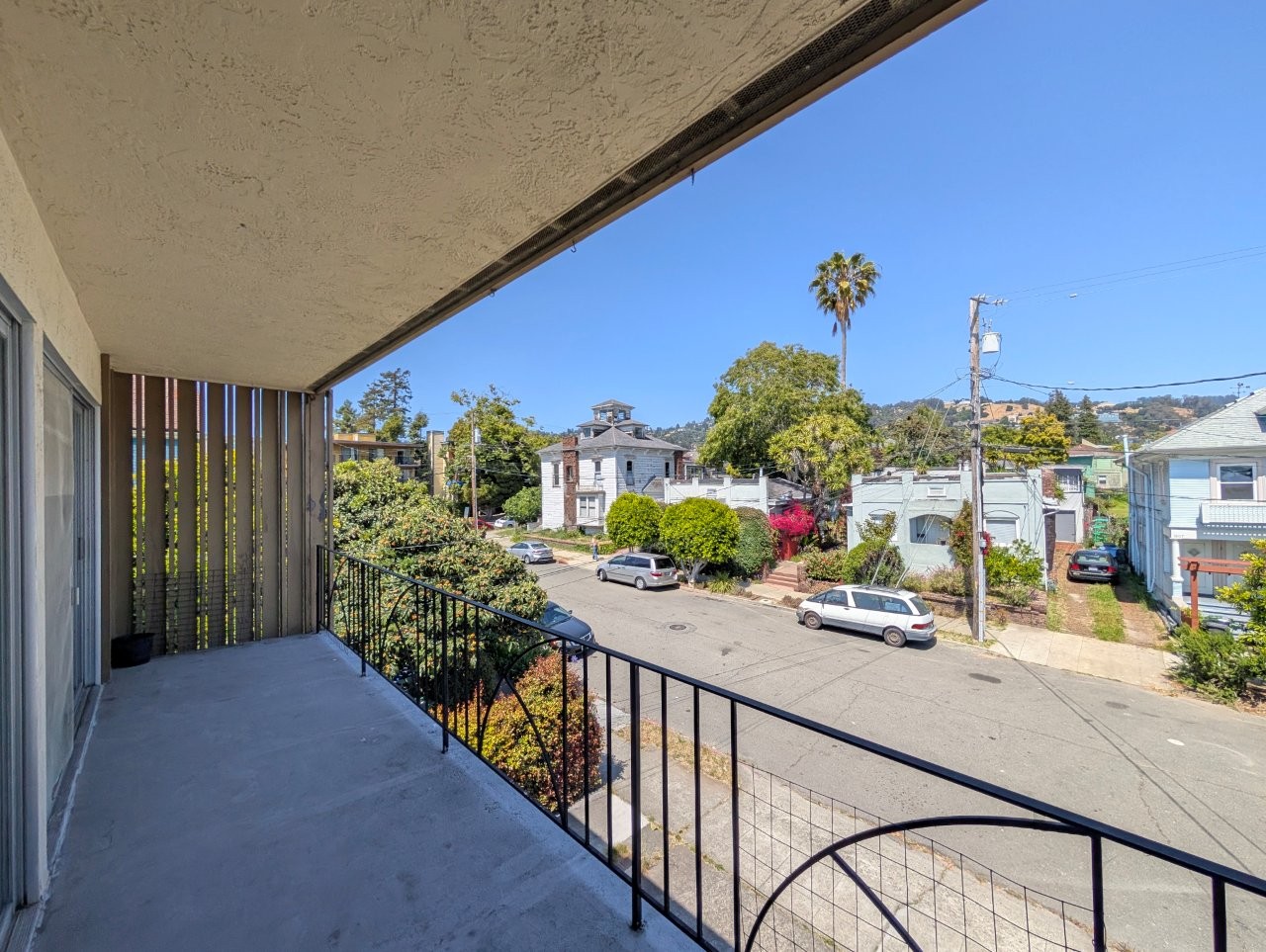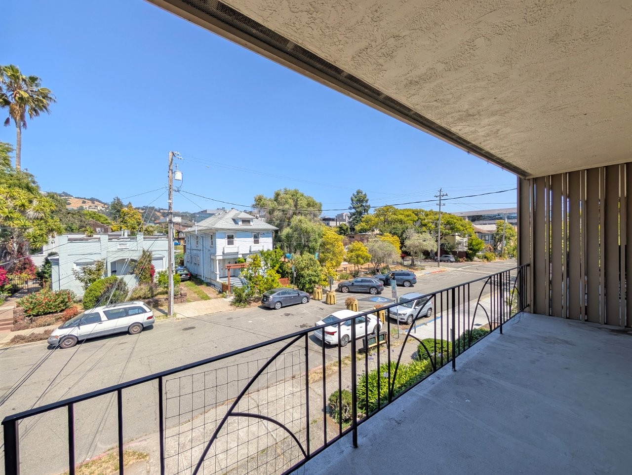 Both bedrooms are roomy and both include closet space for storage.  A large, wide balcony overlooks the neighborhood and offers stunning area views.