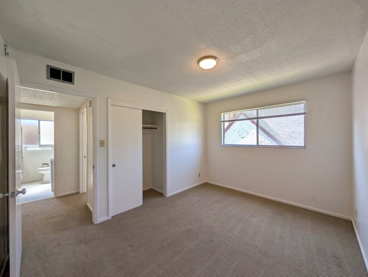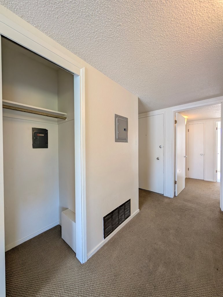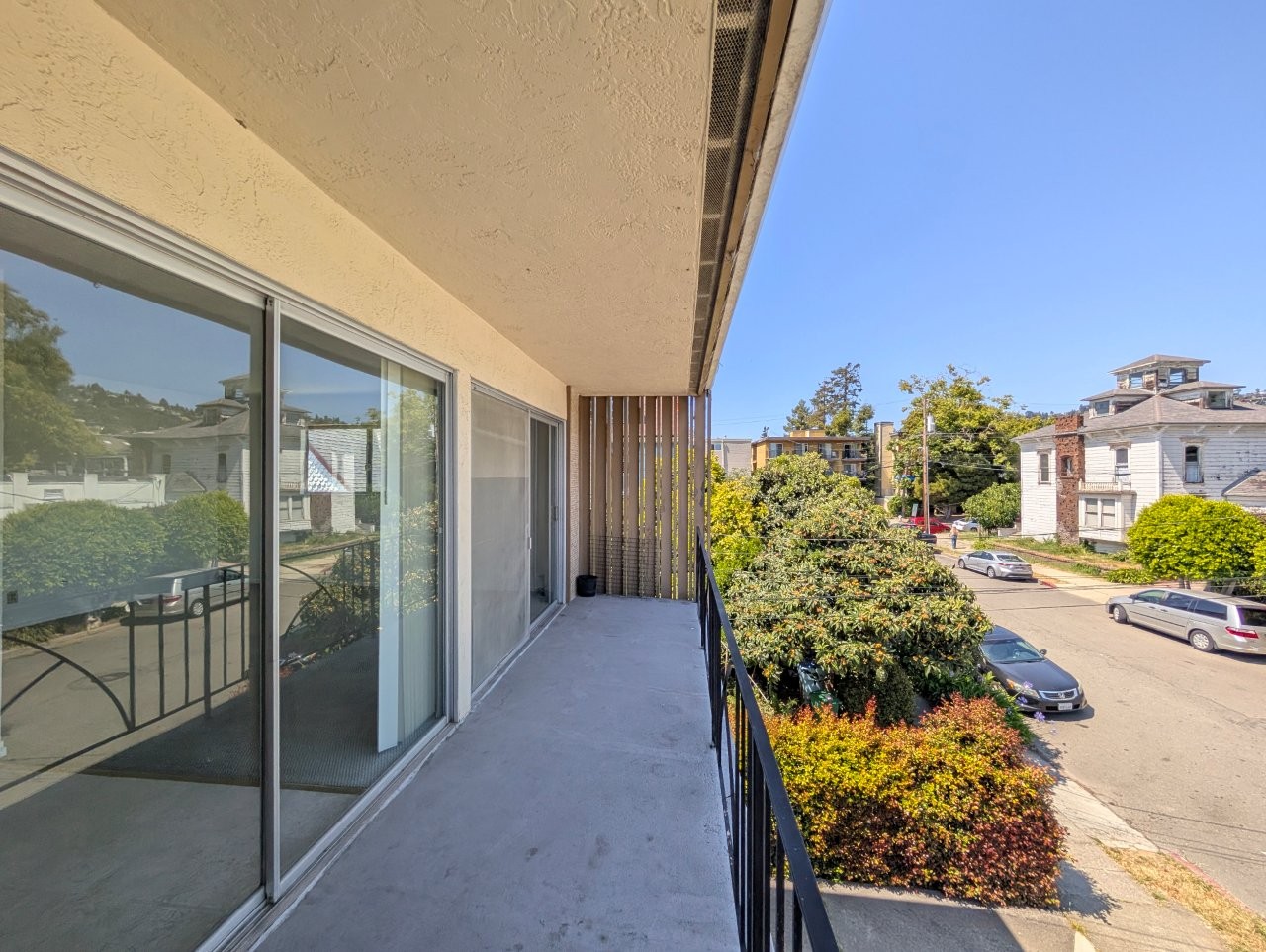 Both bedrooms are roomy and both include closet space for storage.  A large, wide balcony overlooks the neighborhood and offers stunning area views.