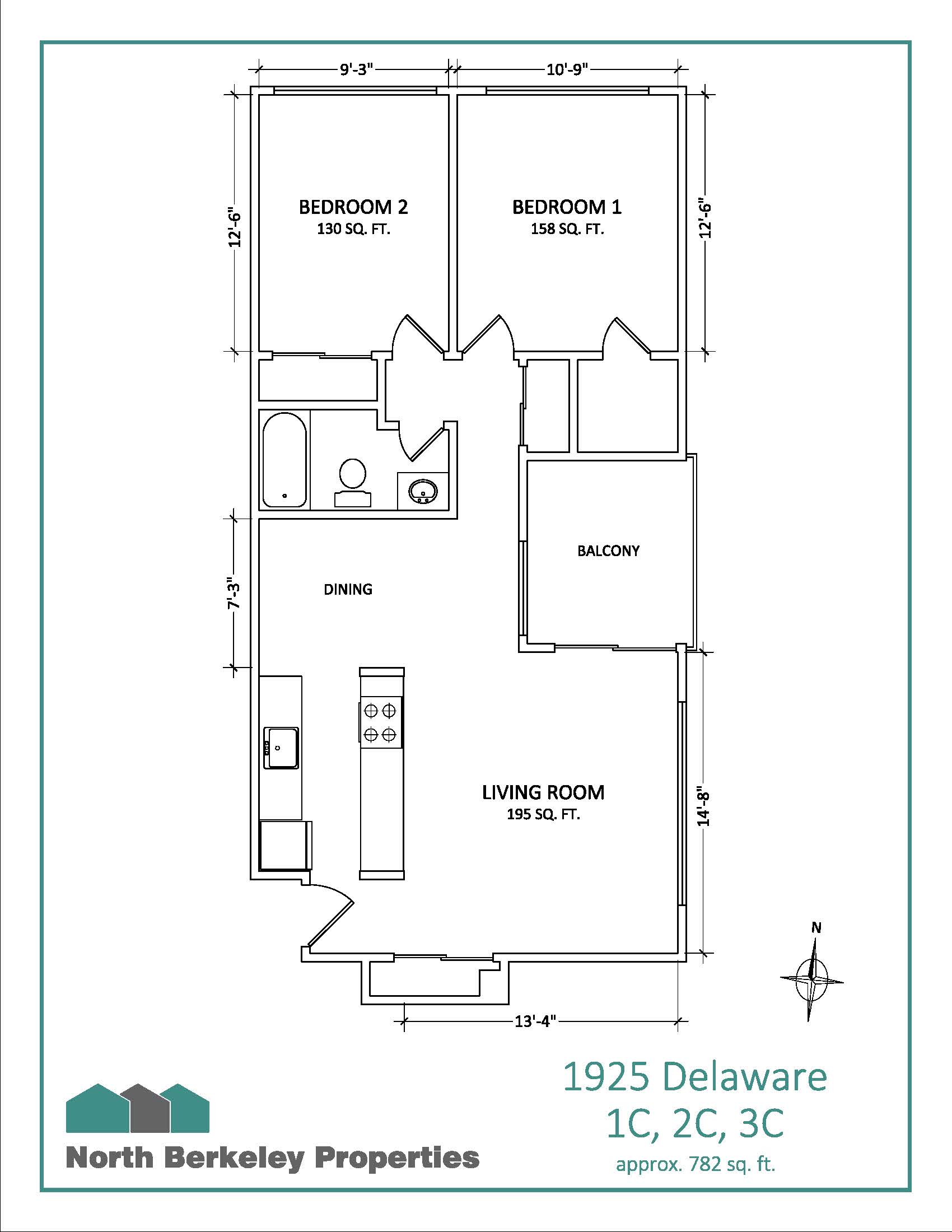 2-Bedroom / 1-Bath, ~780 sq feet