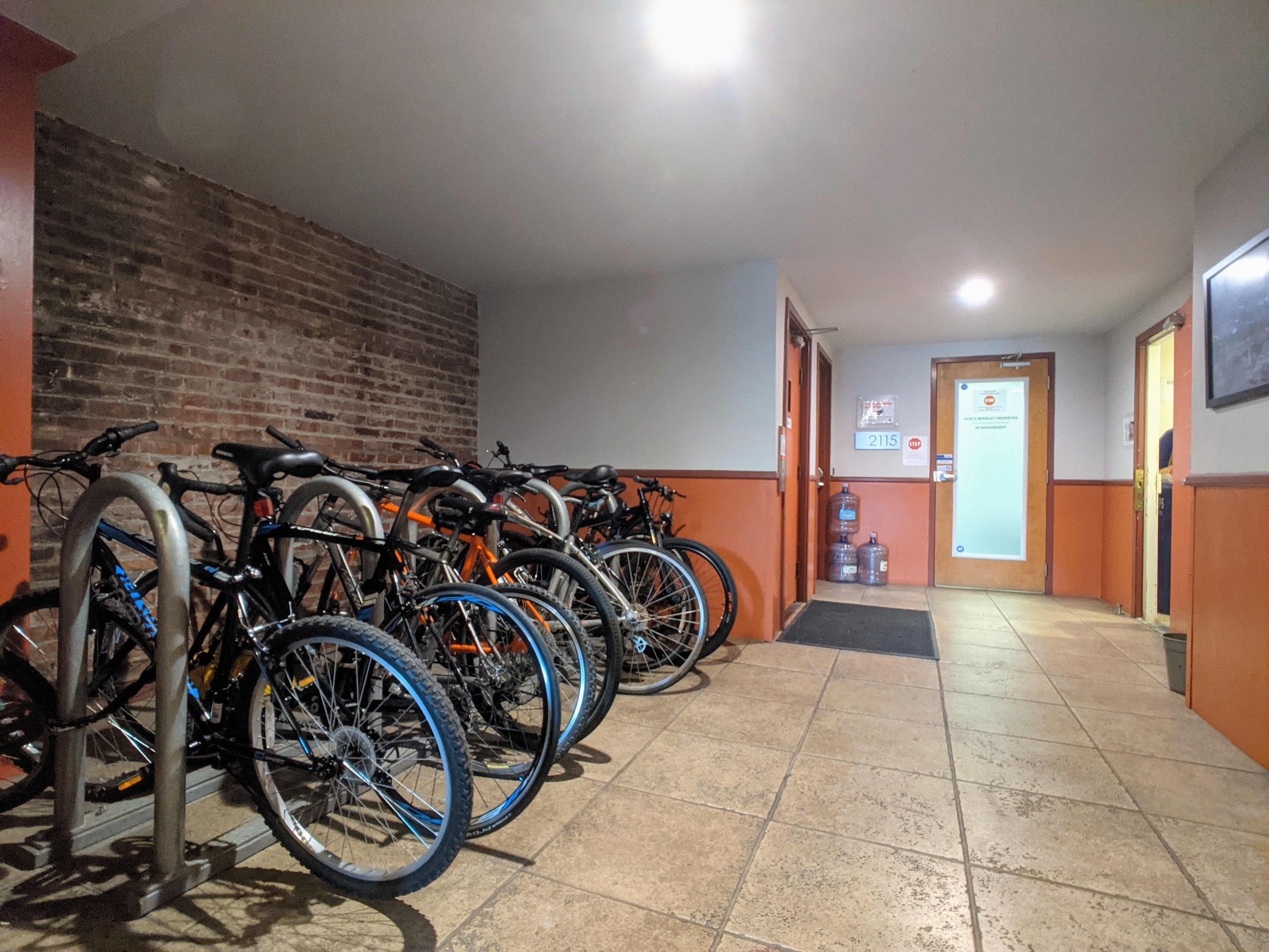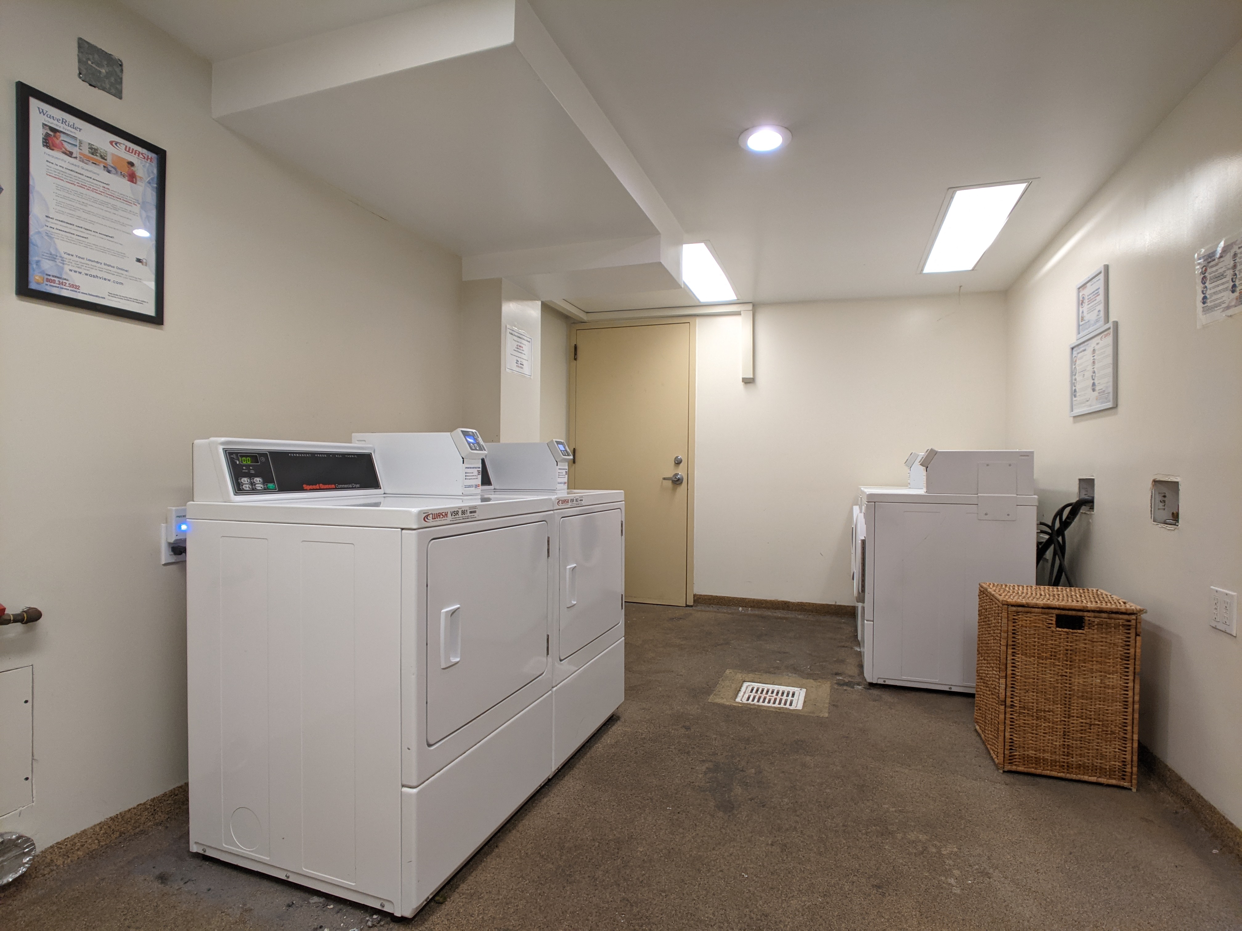 Building amenities include on-site credit card laundry machines, on-site management office with package acceptance / hold, bike parking, and trash / recycling bins.