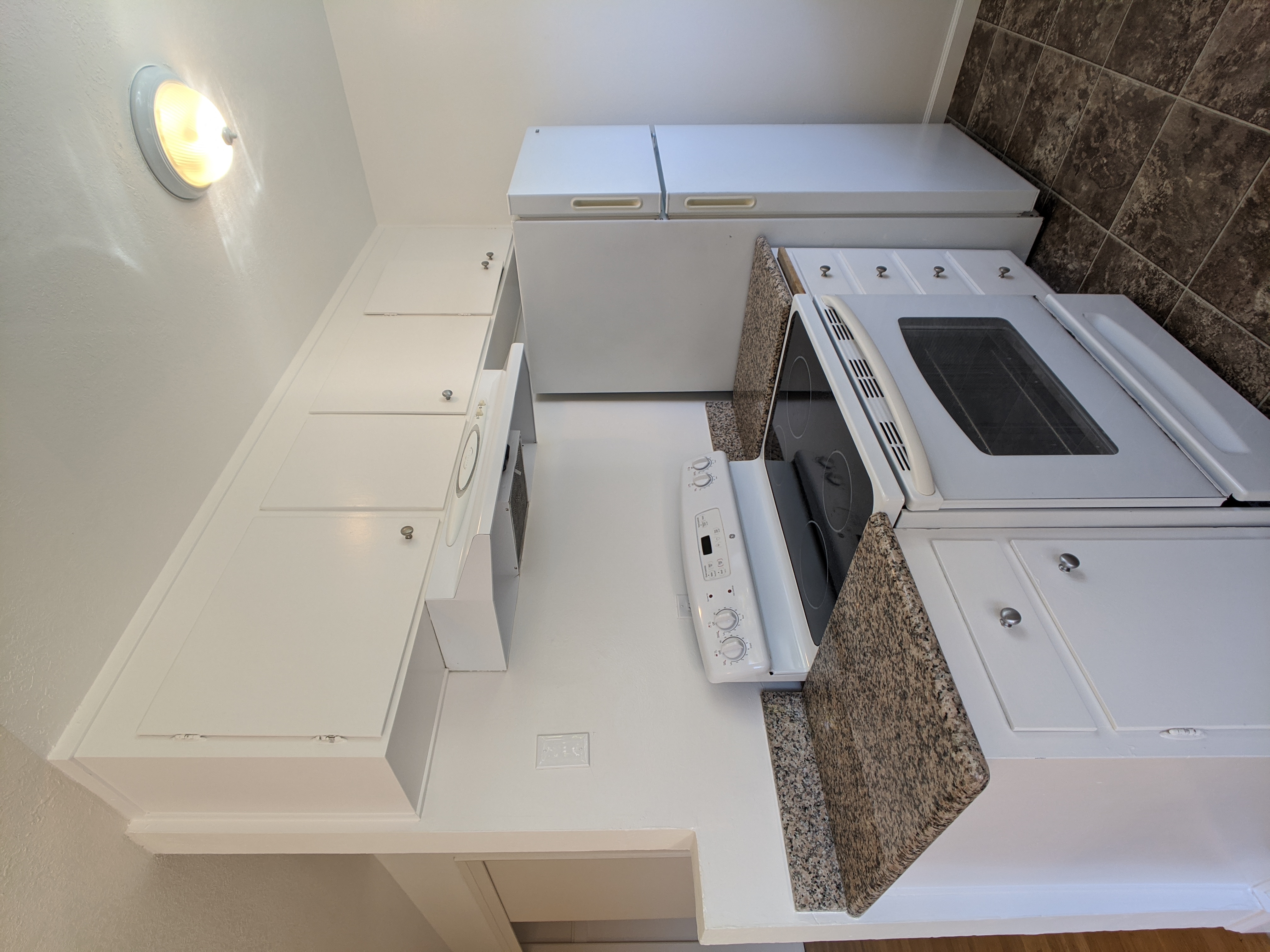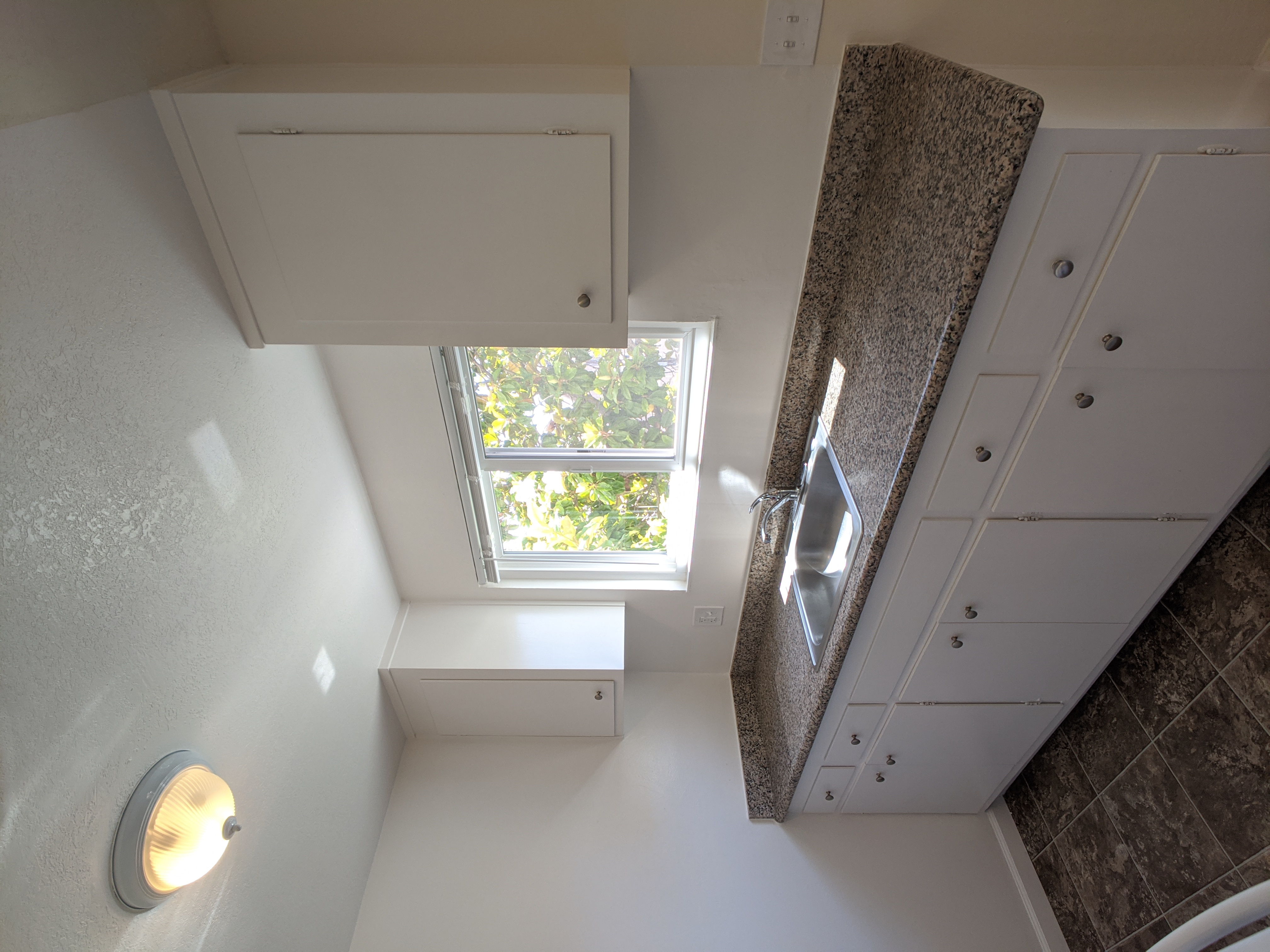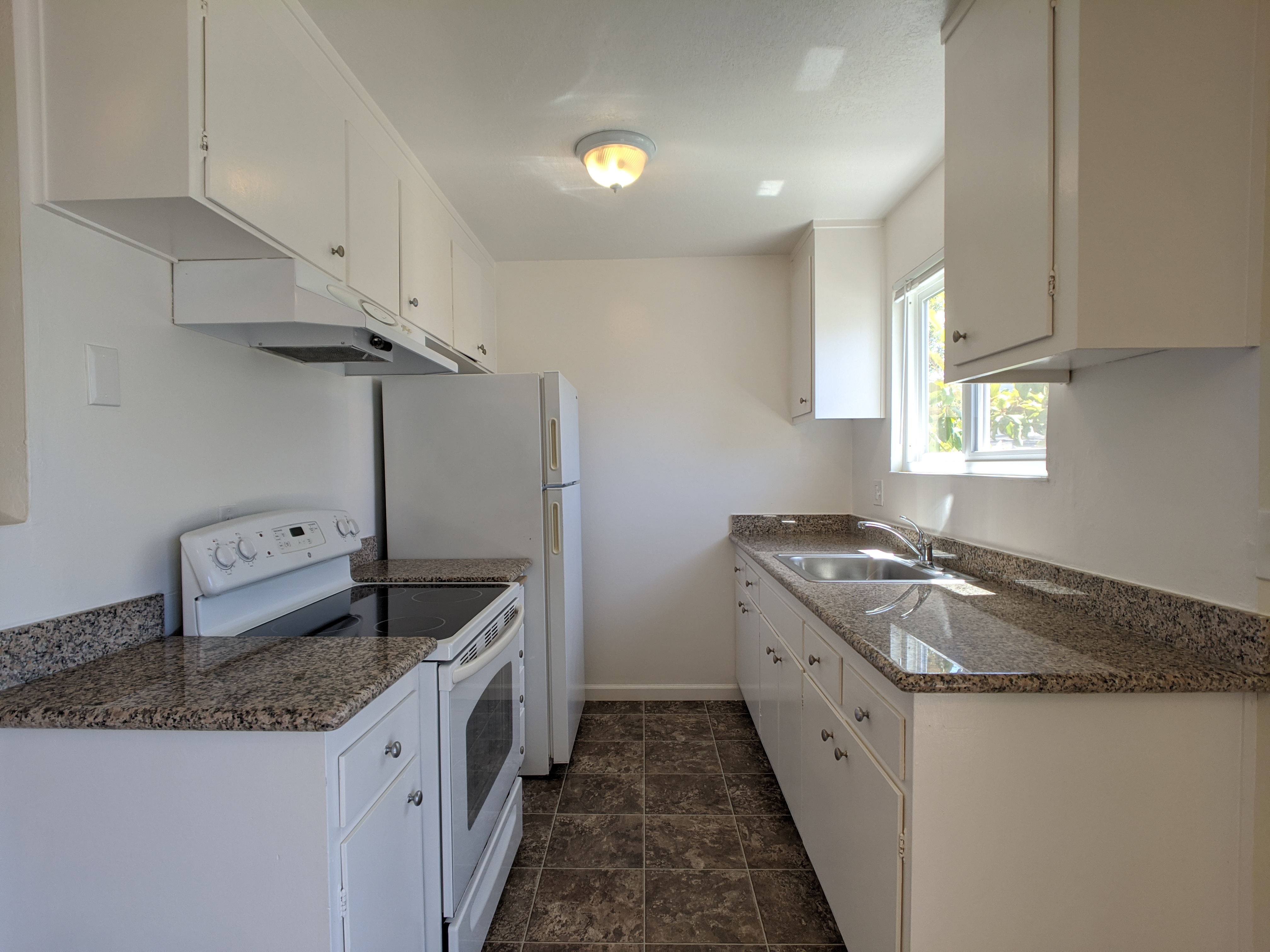 Kitchen has appliances included (fridge + range) and has nice granite countertops and plenty of cabinet space for storage.  Bedrooms are both roomy with nice daytime light and dedicated closet space.