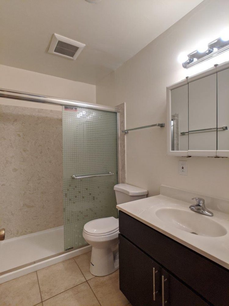 The unit’s hallway leads to both bedrooms which are nicely sized and have large closets and both rooms are large enough to be used as doubles. Extra linen / storage closets are located by the hallway. Bathroom was previously redone and features updated fixtures with a walk-in shower + cultured marble surround.
