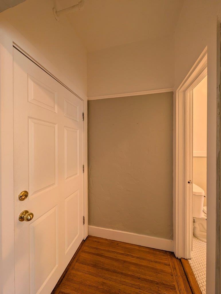 Unit #14 features a large open living room and kitchen area complete with a fireplace. Bedroom is roomy and has a large oversized closet for storage. Hardwood and red brick floors in all the main living areas – brick floors in the entry hall.